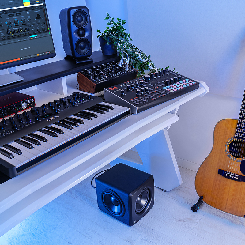 打破 “大体积 = 好低频” 的刻板印象,iLoud Sub 以市面最小占地面积,轻松融入各类工作场景:无论是城市公寓的桌面工作室、卧室后期编辑区,还是家庭客厅的影音角,都能塞进桌面下、墙角等缝隙空间,无需重新规划布局。小体积却不妥协性能,让有限空间也能拥有饱满、精准的低频支撑,成为小型工作室与家庭用户的理想之选。